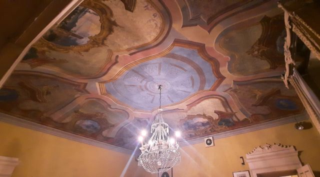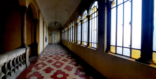 Al piano seminterrato troviamo cantine a volta, ascensore e tre uffici. Dal cortile si accede a due 2 appartamenti, oltre a 3 vani soffitta/sottotetto e una scala che da l'accesso alla torretta panoramica posizionata sul tetto. Al primo piano della parte centrale c'è il piano nobile con undici vani e servizi, arricchiti da soffitti a volte e affreschi.